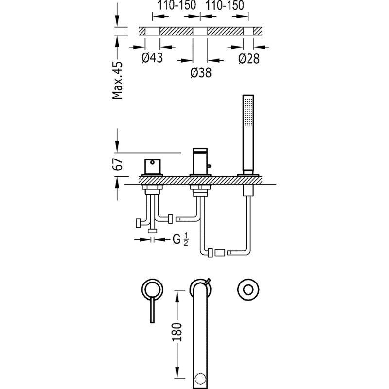 Įmontuojamas į vonios kraštą maišytuvas Tres Max-Tres Selection 062.161.03