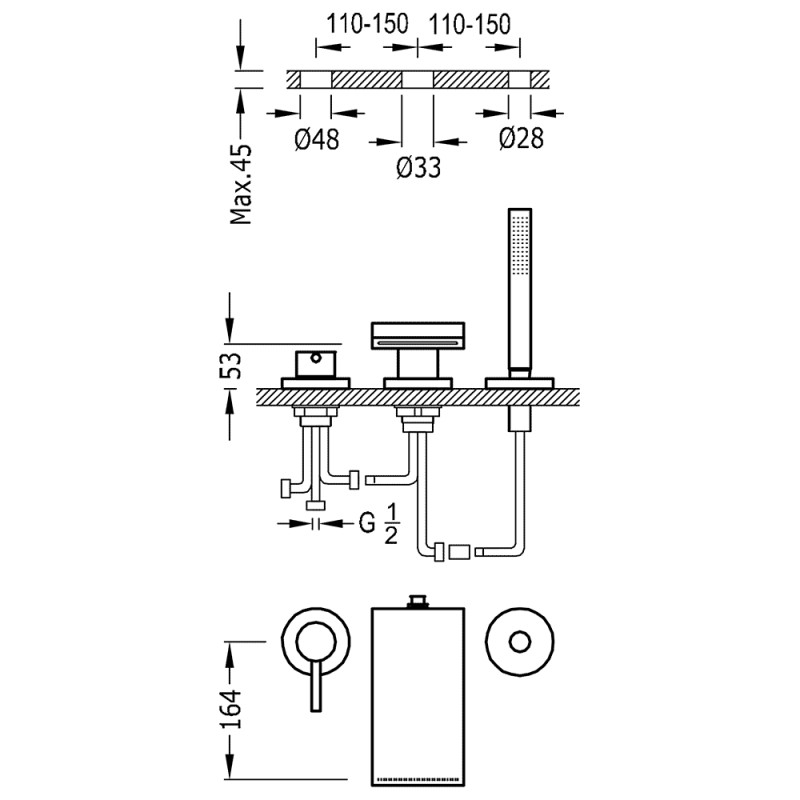 Įmontuojamas į vonios kraštą maišytuvas Tres Max-Tres Selection 1.62.161