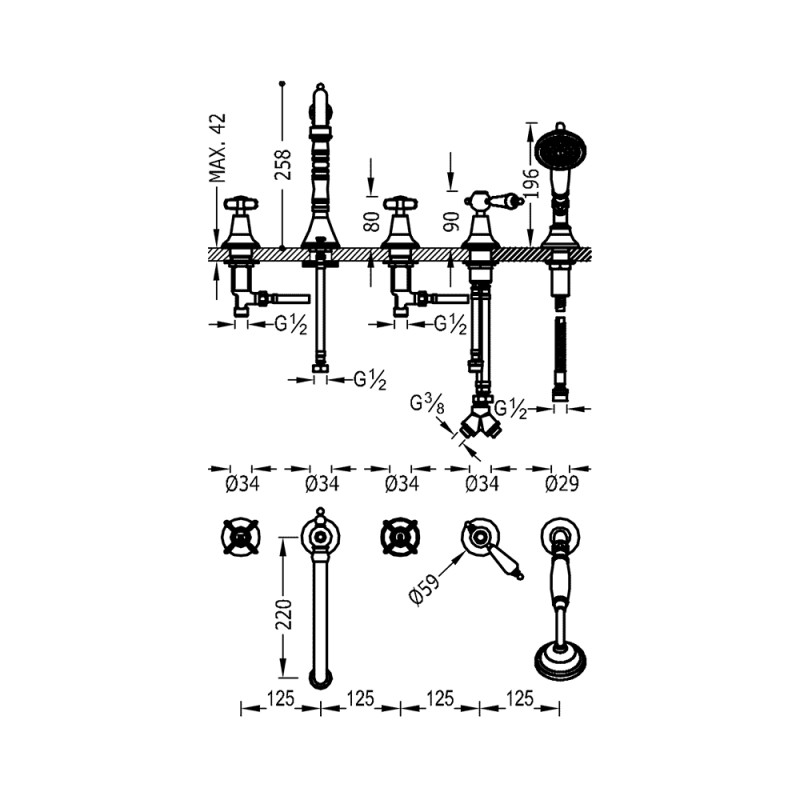 Įmontuojamas į vonios kraštą maišytuvas Tres Tres-Classic 242.146.01