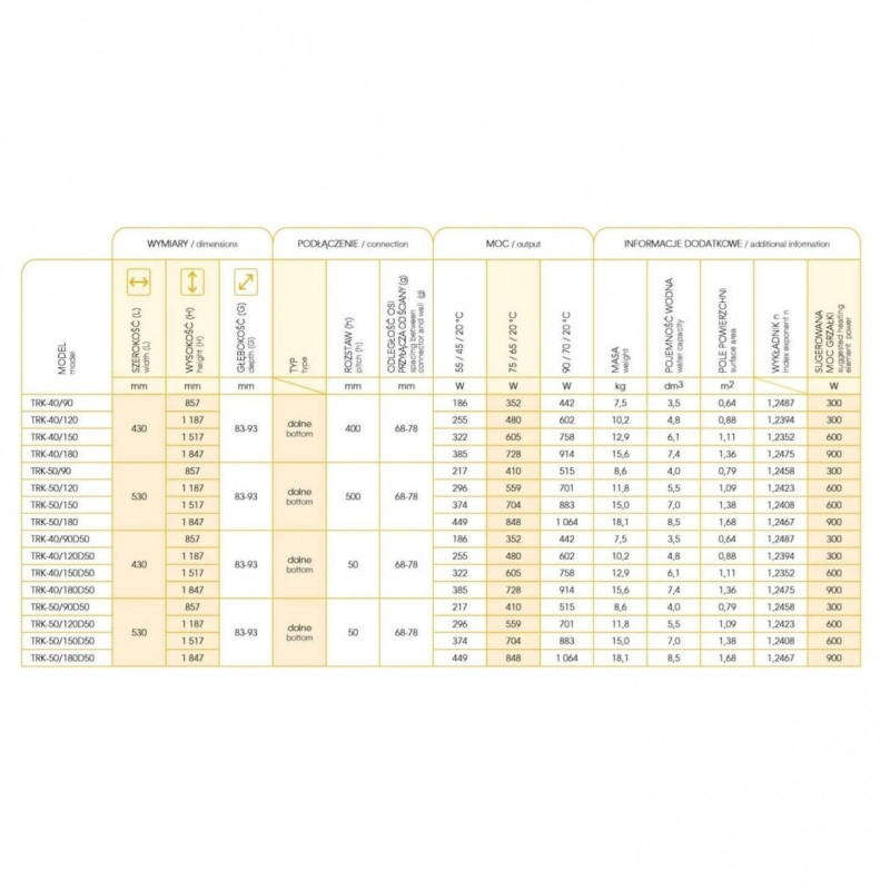 857x430(300W); 1187x430 (600W); 857x530(300W); 1187x530(600W); 1517x530(600W); 1847x530(900W).Galimi gyvatuko pajungimai (užsakymo metu komentarų laukelyje nurodykite kuris pajungimo tipas Jums yra reikalingas):