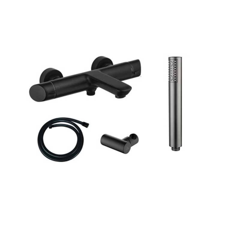 Juodas matinis maišytuvas Arnika su dušo komplektu