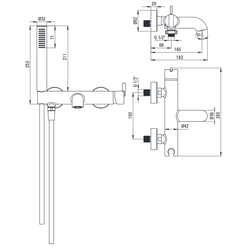 Juodas matinis vonios maišytuvas Silia