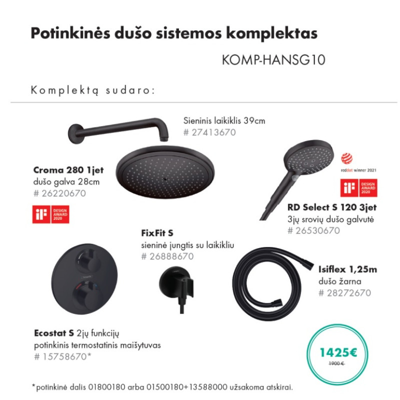 Juodos matinės spalvos potinkinis Hansgrohe dušo sistemos komplektas 6 in 1