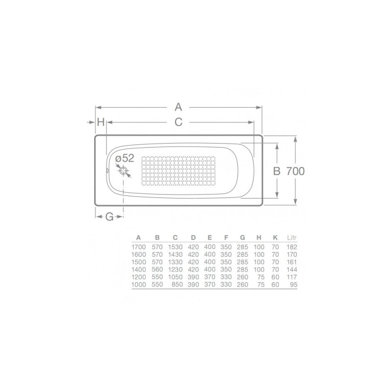 Vonios Roca Continental ketaus storis - 5.5 mm, emalės - 1.5 mm.