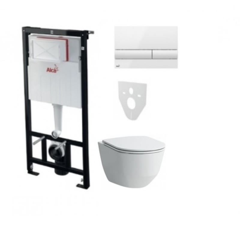 Komplektas 4 in1 Alcaplast rėmas + mygtukas baltas, Laufen PRO Rimless klozetas su lėtaegiu dangčiu