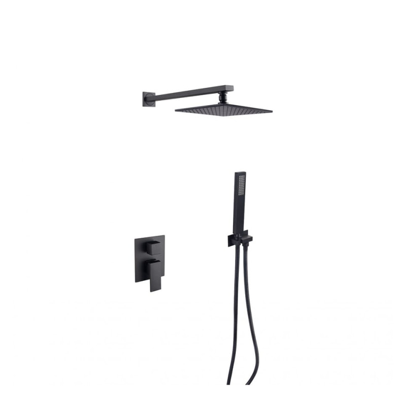 Kvadratinė juoda matinė dušo sistema Besco Modern Varium