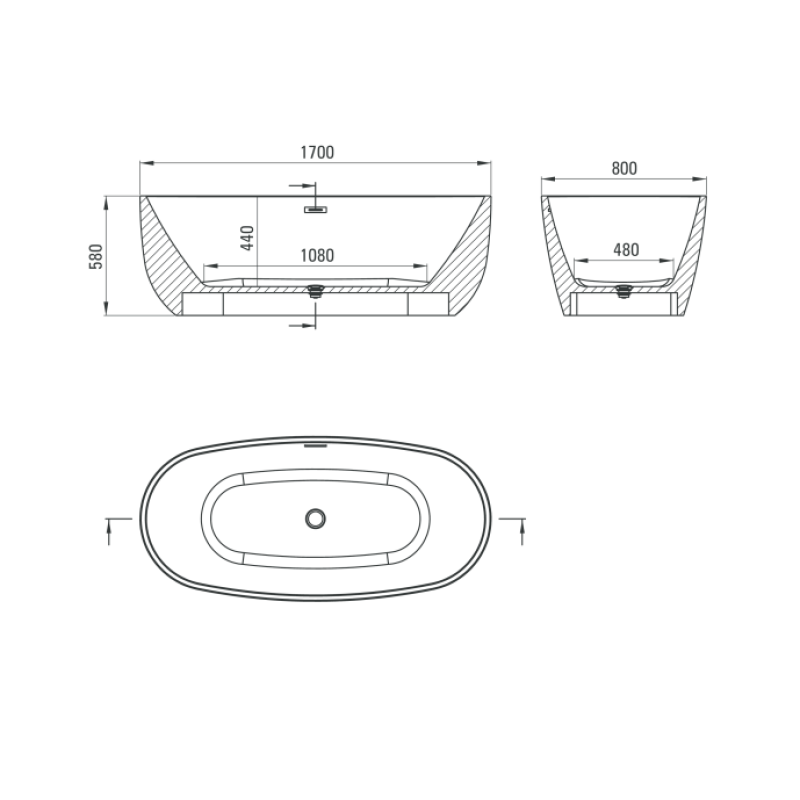 Laisvai pastatoma akrilinė vonia Arnika 170 cm
