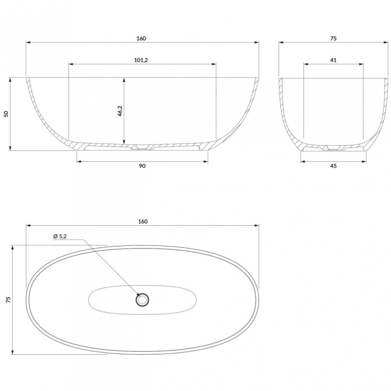 Laisvai pastatomos lieto akmens vonios Omnires SHELL M+ parametrai: