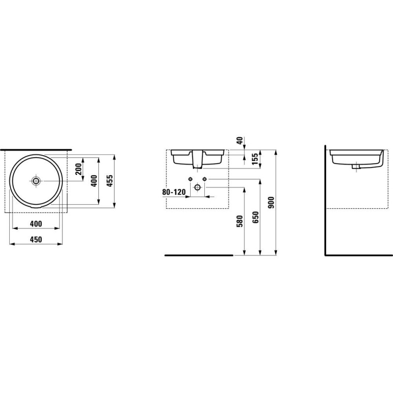 Iš apačios montuojamas praustuvas Laufen Living be skylės maišytuvui