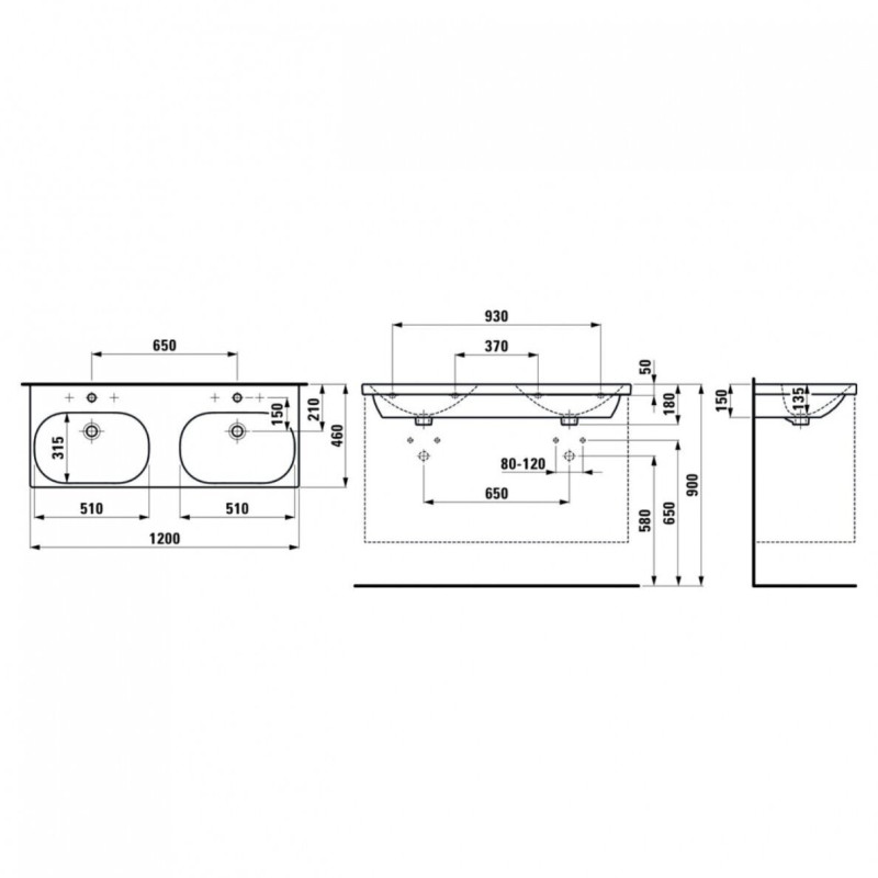 Laufen LUA dvigubas pakabinamas praustuvas 120 x 46 cm