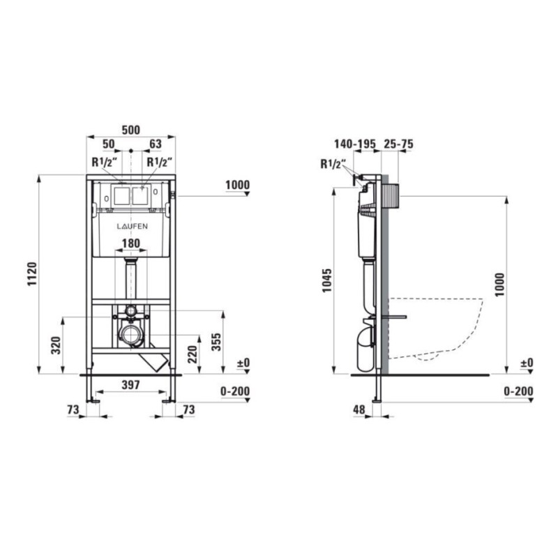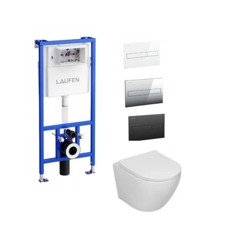 Laufen potinkinis rėmas su mygtuku ir SINTO Rimless pakabinamu klozetu su Slim lėtai nusileidžiančiu dangčiu;