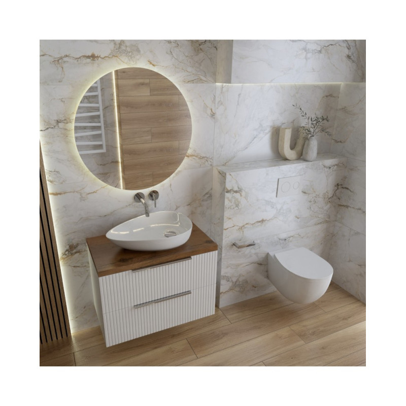 Kiane 80 veidrodis yra modernus veidrodžio modelis, turintis puikiai apvalią formą. Jis išsiskiria gražiu 6000K šaltos spalvos LED apšvietimu.