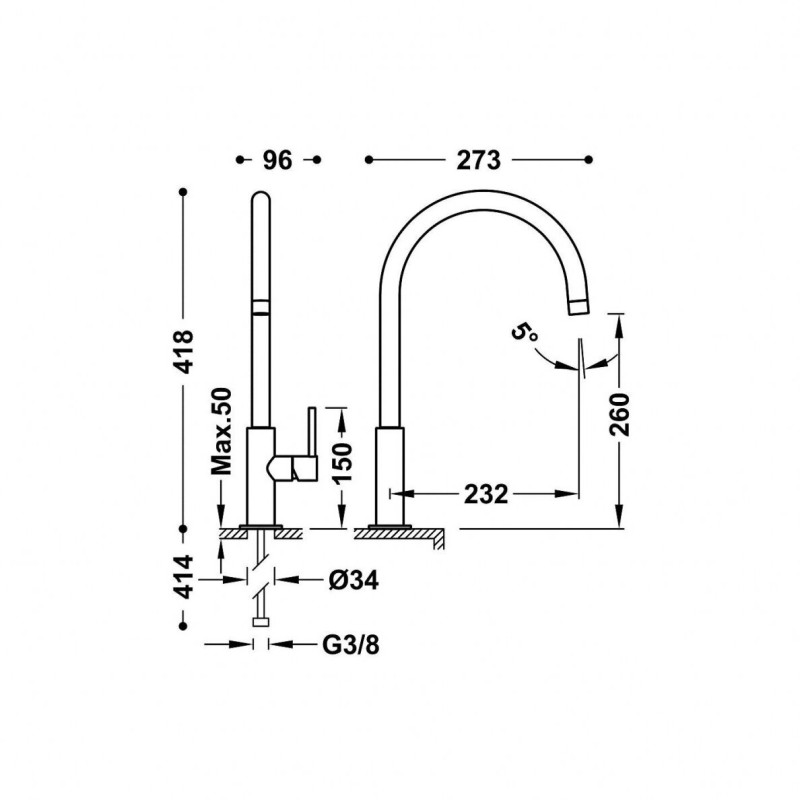 Maišytuvas praustuvui STUDY EXCLUSIVE 260 su lenktu snapu be d.v.