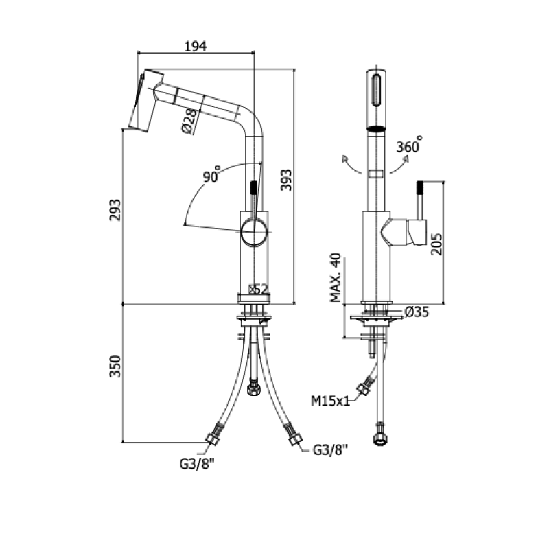 Maišytuvas virtuvės plautuvei su ištraukiama žarna Paffoni Jolly (spalvų pasirinkimas)