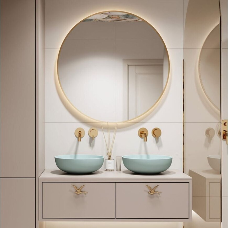 Massi Valo Slim LED apvalus veidrodis su LED apšvietimu, aukso spalvos rėmeliu, įvairių dydžių