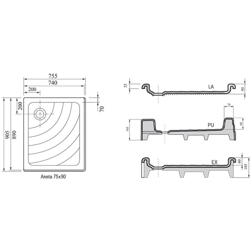 Galima montuoti ant kojelių arba į grindis (tipas LA), keraminių plytelių (tipo EX) apdaila arba dušo padėklai su išlieta atrama, sutvirtinti poliuretano laikikliais, šiuo atveju plokštė ir padėklas sudaro visumą (tipas PU), o atrama užtikrina lengvą dušo padėklo įrengimą, kadangi nereikalinga papildoma apdaila.