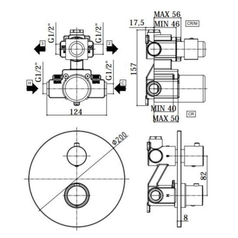 Potinkinis termostatinis dušo maišytuvas, Ø200 mm