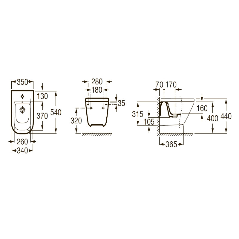 - Bide matmenys: plotis: 35 cm, gylis: 54 cm.