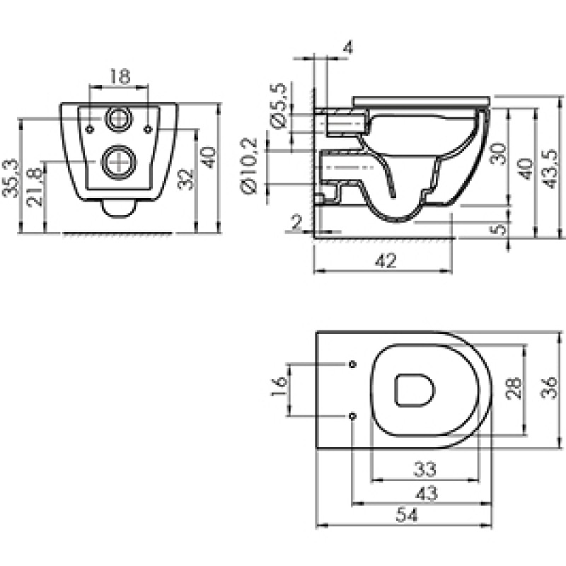 Klozeto ilgis 54 cm