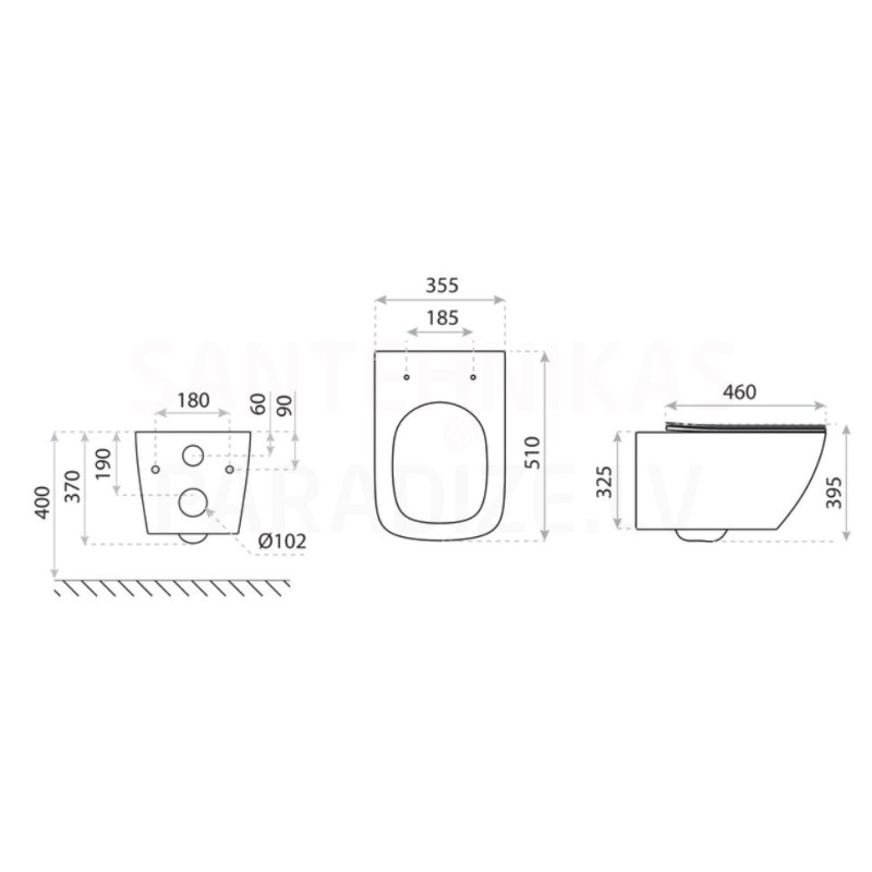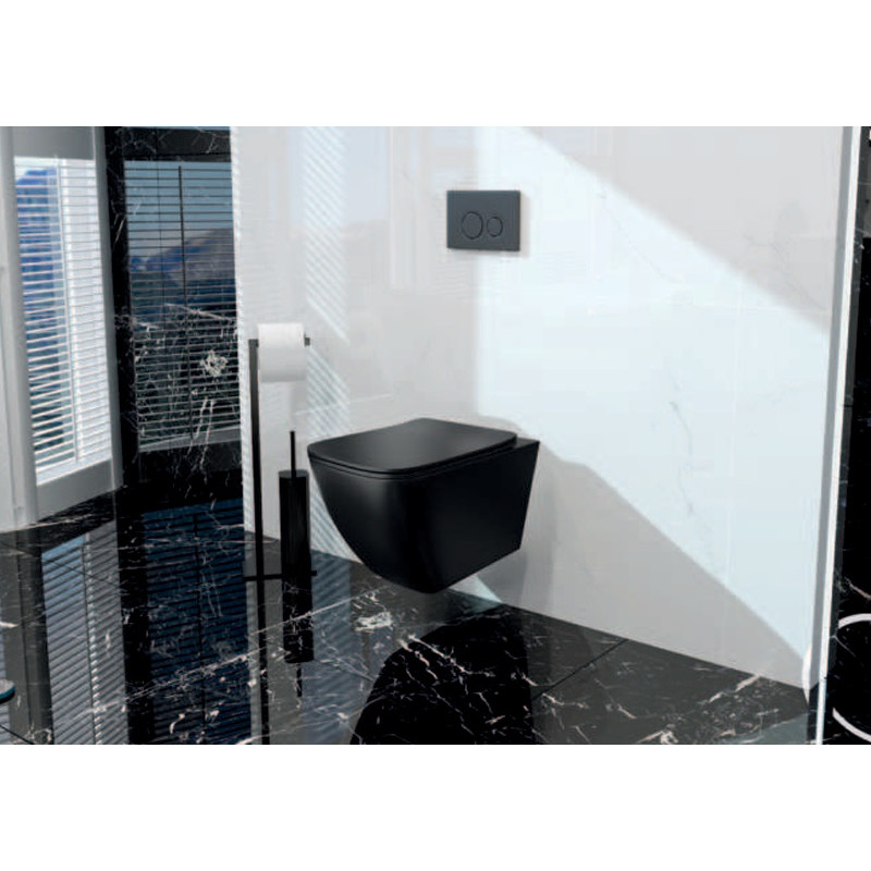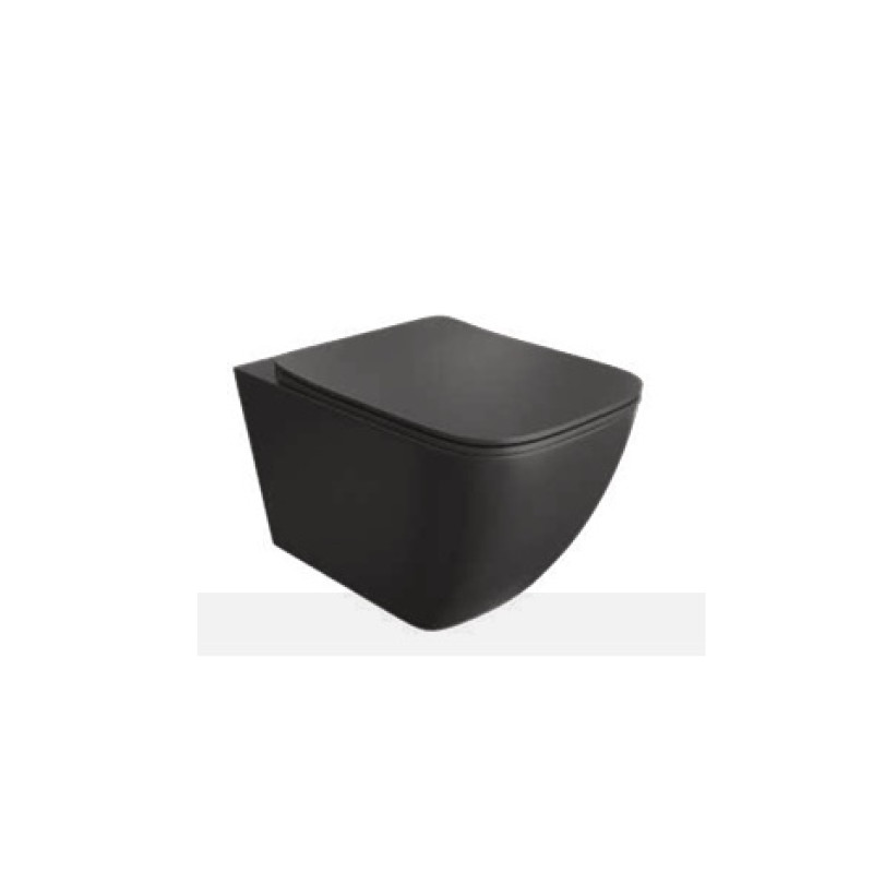 Pakabinamas klozetas Victory su Rimless juodas matinis su lėtaeigiu dangčiu