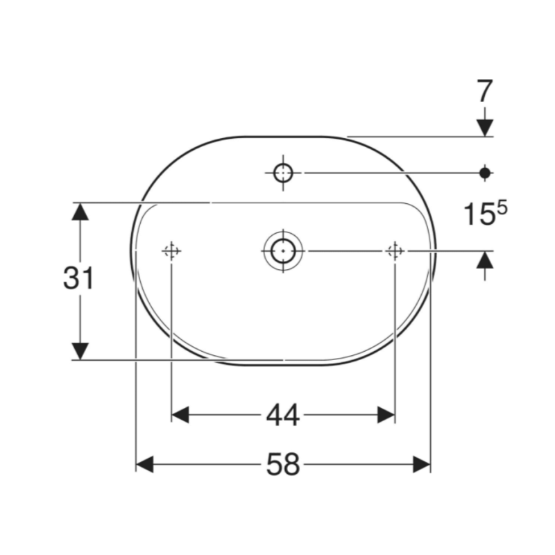 Pastatomas ant stalviršio ovalus praustuvas su skyle maišytuvui Geberit Variform 60cm