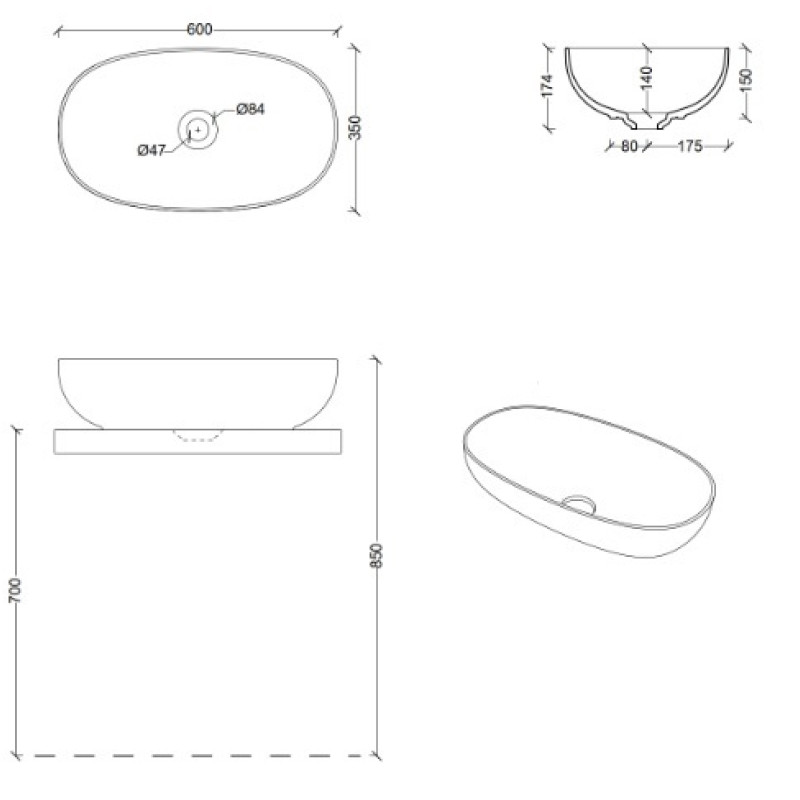 Pastatomas ant stalviršio praustuvas Alice Ceramica Form 600x350 mm juodas matinis