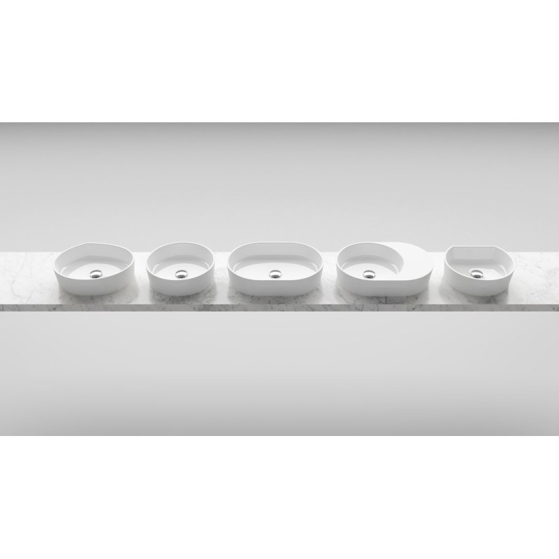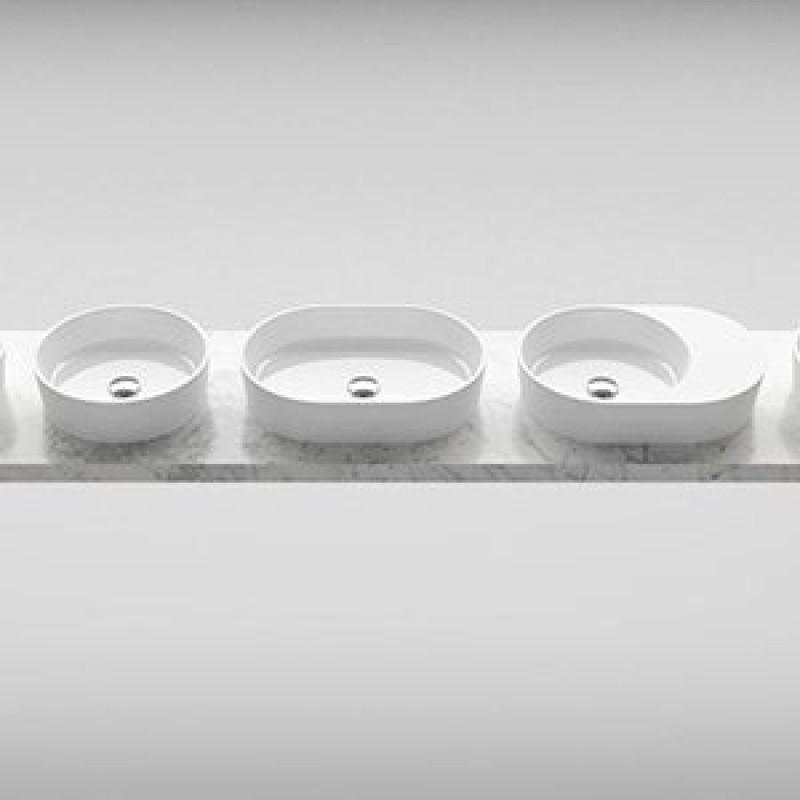 Iš lieto marmuro pagamintas ir paprastų geometrinių formų įkvėptas praustuvas. Dizaineris transformavo jo formą į praktišką ovalą. Patogus plotis kasdieniam naudojimui. Idealiai atkartoja kitų stačiakampių vonios kambario elementų (plytelių, dušo ar baldų) formą. Gali būti montuojamas ant horizontalios plokštės.