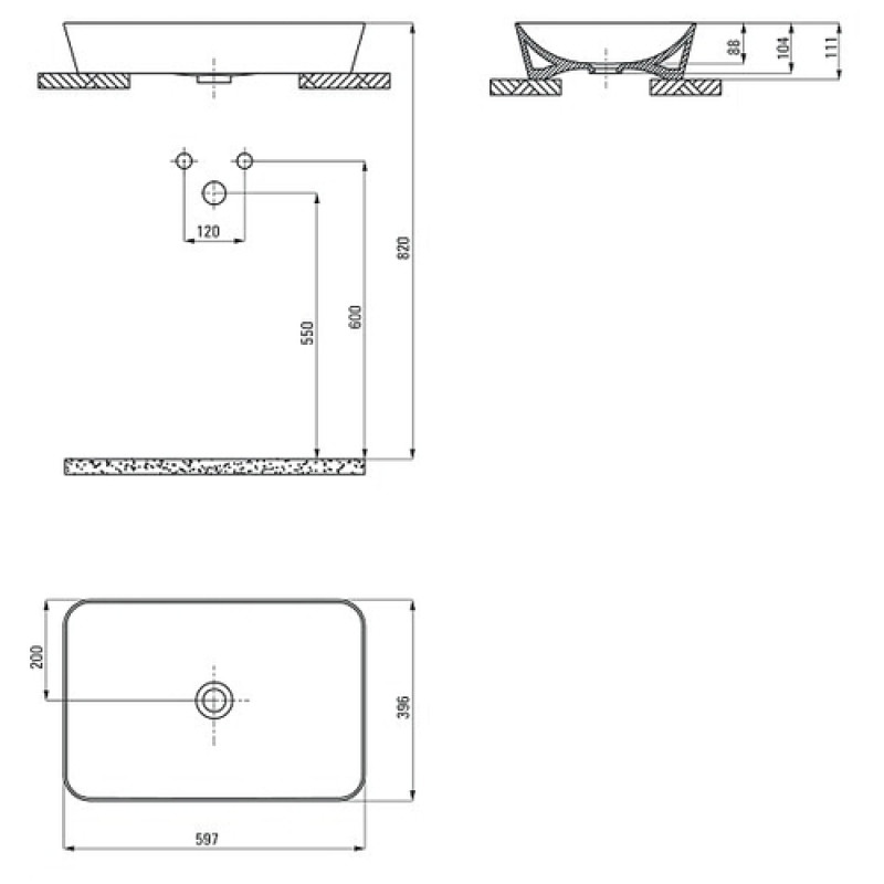 Pastatomas Deante praustuvas Tess CDS 597x369mm