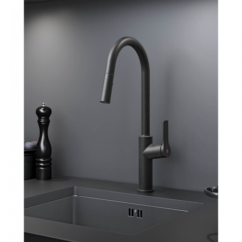 Plautuvės maišytuvas Gustavsberg Epic su ištraukiama galvute juodos spalvos