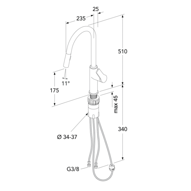 - Patvirtinto tipo lengviau prijungiama lanksti 3/8 colio vandens jungtis