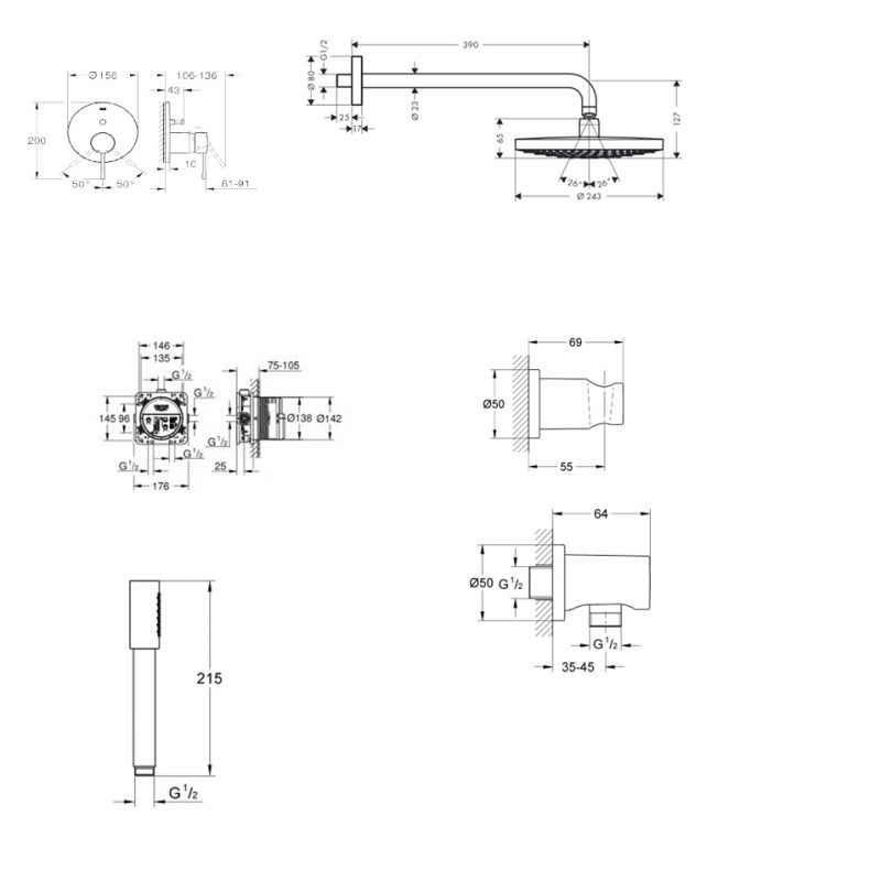 Potinkinė dušo sistema Grohe braižyto grafito