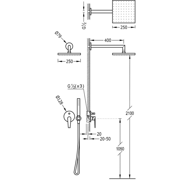 Potinkinė dušo sistema Tres Class-Tres Selection 205.180.02