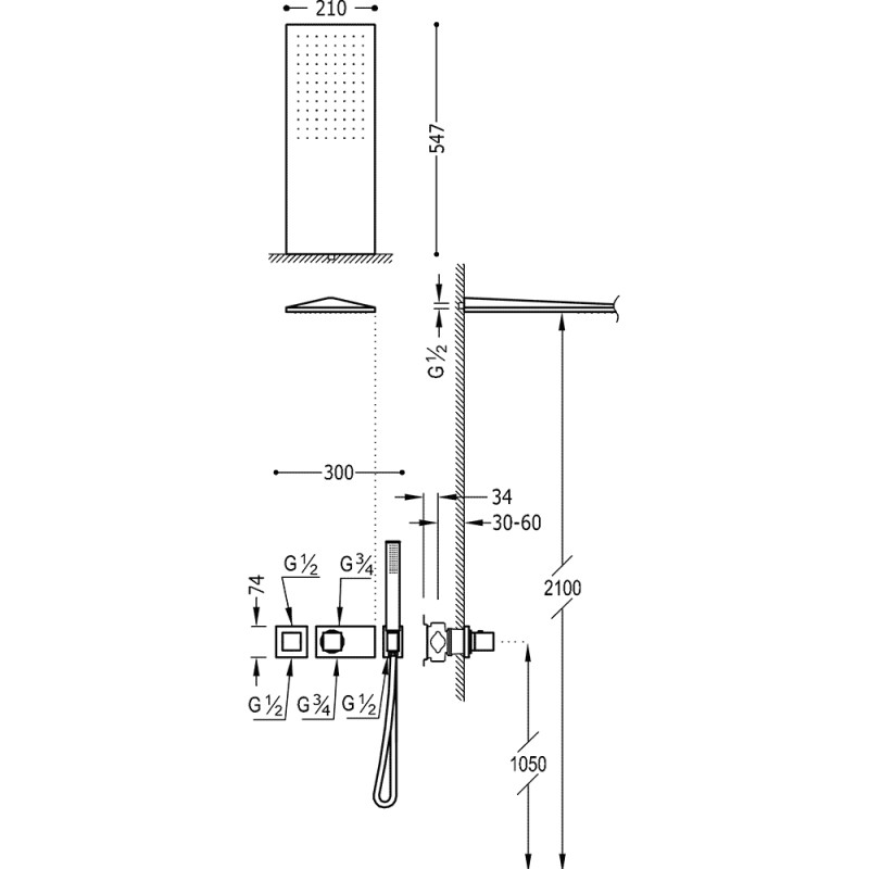 Potinkinė dušo sistema Tres Cuadro Exclusive 207.252.02 chromo