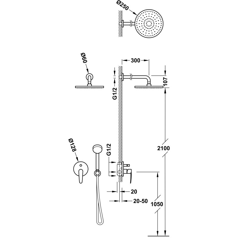 Potinkinė dušo sistema Tres Flat-Tres 204.180.02