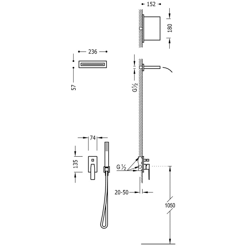 Potinkinė dušo sistema Tres Slim Exclusive (blizgi) 202.180.05
