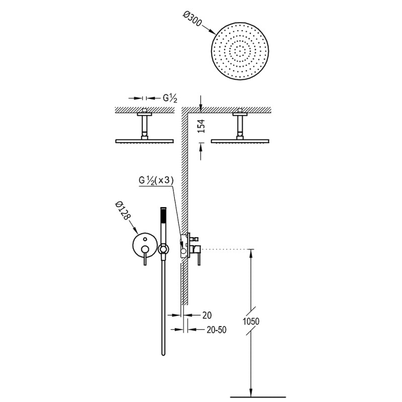 Potinkinė dušo sistema Tres Study Exclusive 26228003