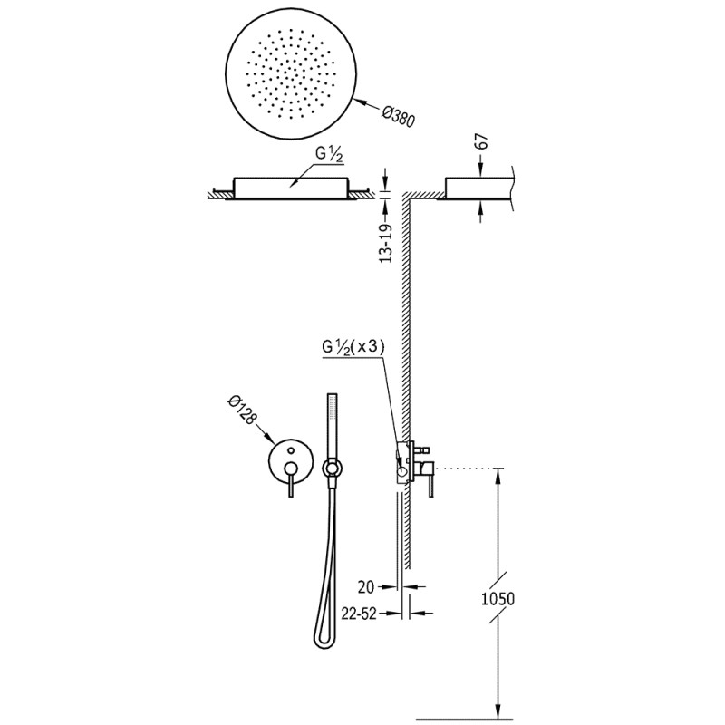 Potinkinė dušo sistema Tres Study Exclusive 262.180.99