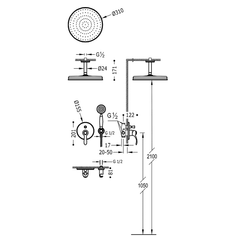 Potinkinė dušo sistema Tres Tres-Classic 242.180.04