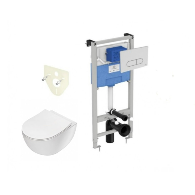Potinkinio rėmo Ideal Standard su baltu mygtuku ir klozeto Peonia su lėtaeigiu dangčiu komplektas