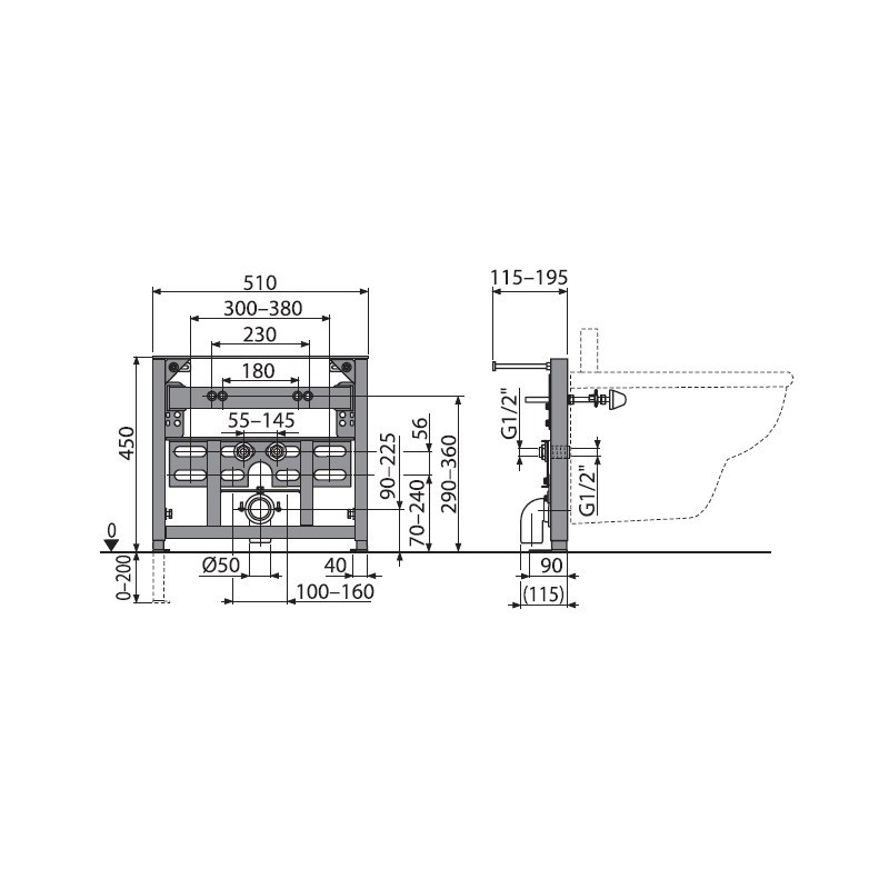 Potinkinis WC montavimo rėmas A101 Alcaplast su tvirtinimais