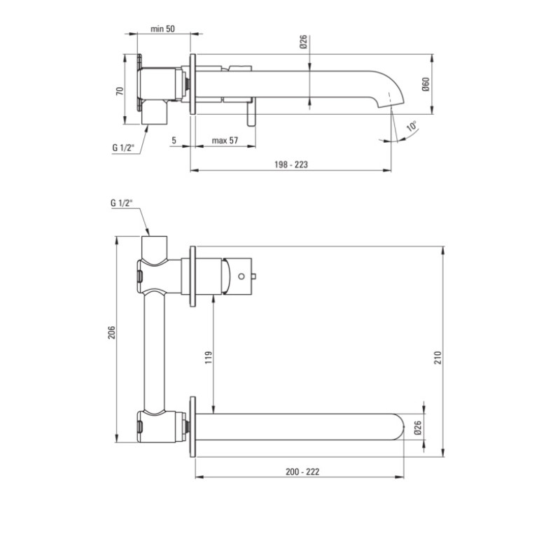 BQS_C54L Potinkinis praustuvo maišytuvas iš sienos Silia bronza su potinkinė dalimi