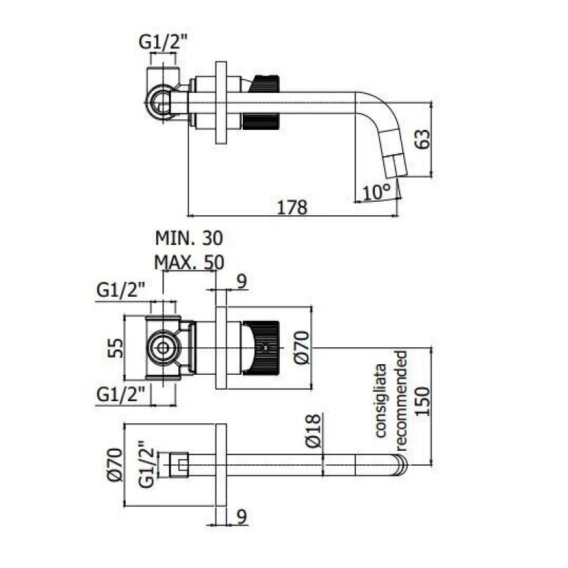 Paffoni JO trijų dalių potinkinis maišytuvas, JO003 - chromo arba juodos matinės spalvos.