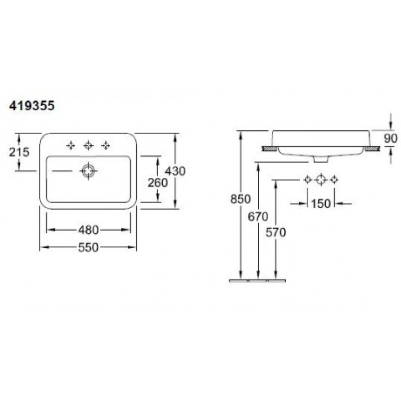 Praustuvas Villeroy & Boch Architectura 41935501, keramika, 550 mm x 430 mm x