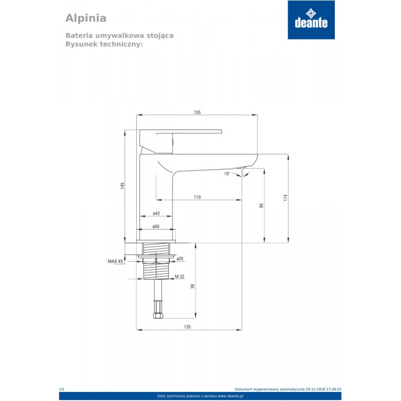 • Maišytuvo aukštis - 145 mm