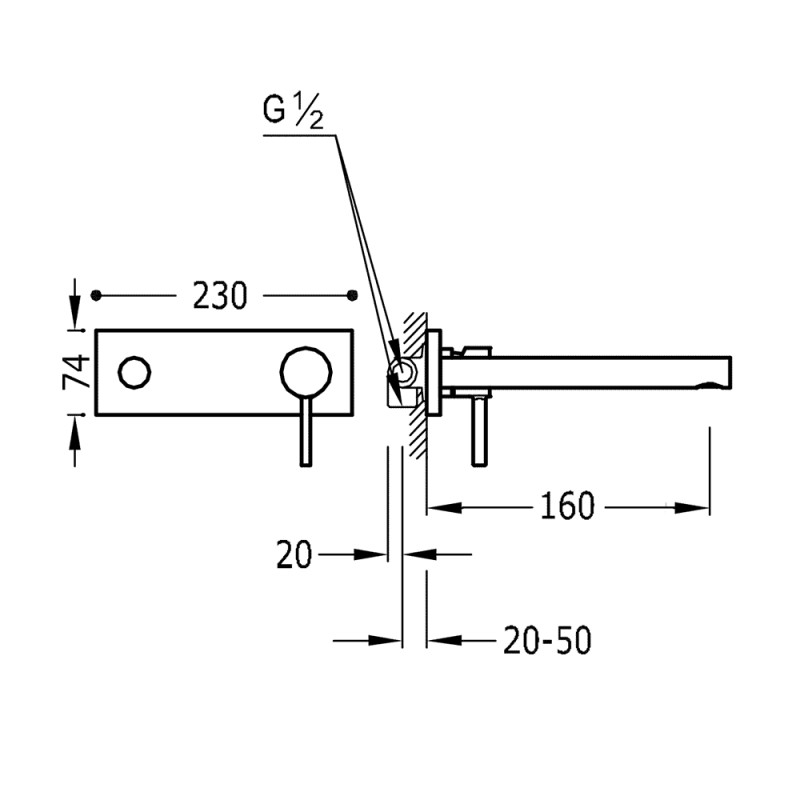 Praustuvo maišytuvas iš sienos Tres Alplus Selection 203.210.01