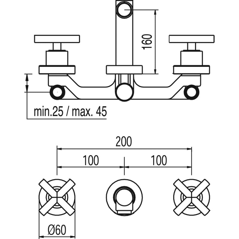 Praustuvo maišytuvas iš sienos Tres Max-Tres Selection 1.63.152