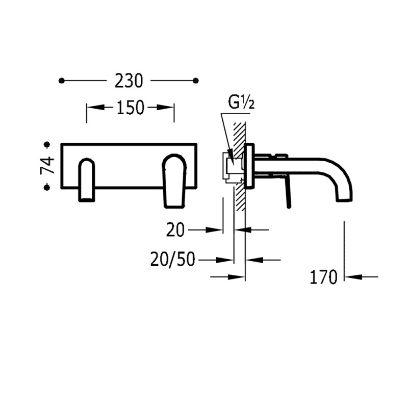 Praustuvo maišytuvas iš sienos Tres Project-Tres 211.200.01