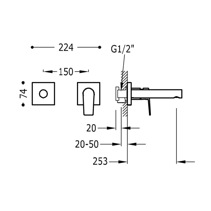 Praustuvo maišytuvas iš sienos Tres Project-Tres 211.202.83