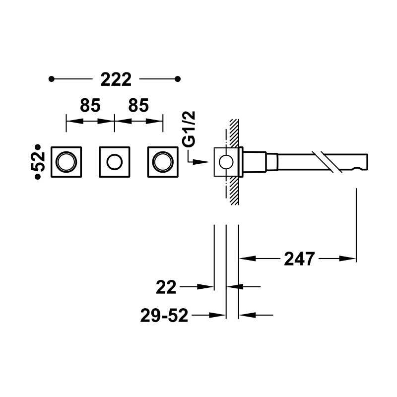 Praustuvo maišytuvas iš sienos Tres Project-Tres 211.753.01