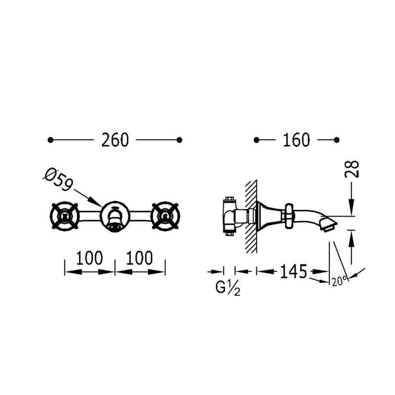 Praustuvo maišytuvas iš sienos Tres Tres-Classic 242.151.02